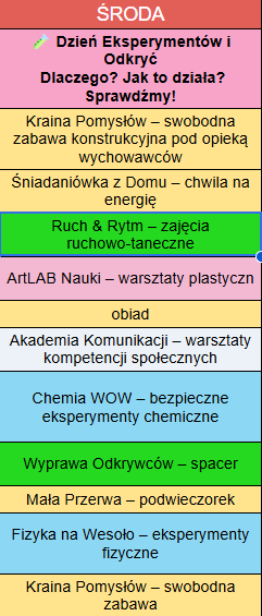W ramach poszczególnych bloków tematycznych lata w mieście Bytom np. artystycznych czy ścisłych mogą się odbywać różne zajęcia: