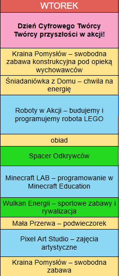 Oryginalne zajęcia np.: druk 3D, autoprezentacja, gotowanie, eksperymenty, pszczelarstwo, prawo kosmiczne, UX.